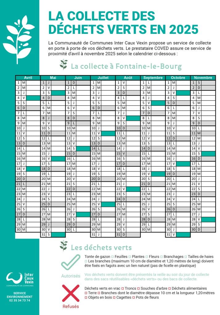 Pour l’année 2025, les collectes auront lieu le matin (à partir de 4h00) aux dates suivantes :